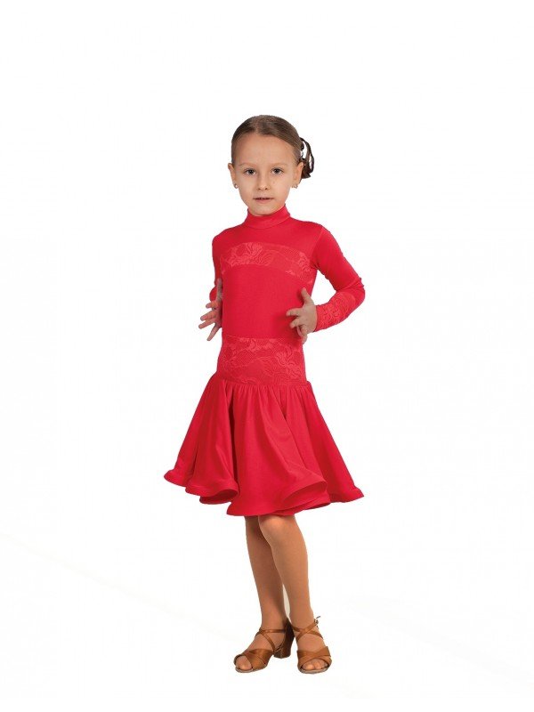 Рейтинговое платье для танцев с пышной юбочкой 2 солнца. Длинный рукав. Декор полоса гипюра на груди и бедрах. Полиамид.