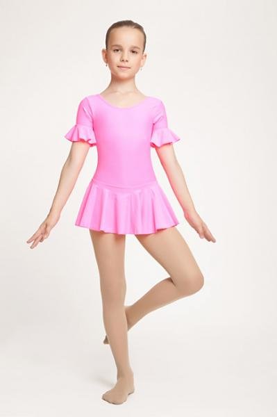 Купальник с юбкой и воланчиком на коротком рукаве. Красивый блеск материала. В танце воланчик на рукаве и юбка подчёркивают движение.